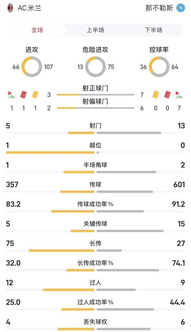 全场数据(米兰vs那不勒斯)