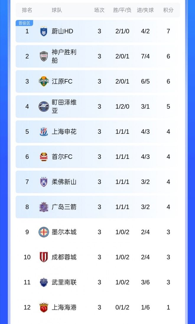而随着上海申花1-0战胜首尔FC,拿到三分的同时,也是成为了本轮亚冠唯一取得胜利的中超球队,这样一来,上海申花以4分位列积分榜第5,成都蓉城以3分位居积分榜第10,上海海港1分暂列垫底。